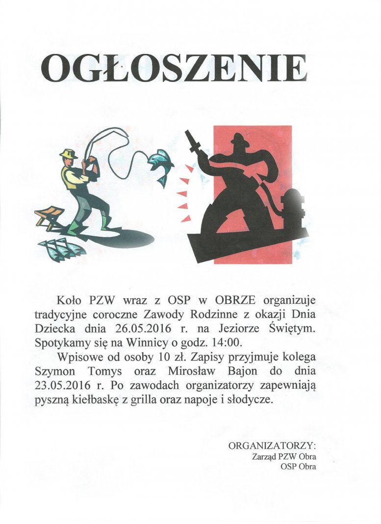 Zawody Wędkarskie - organizowane przez OSP w Obrze oraz Koło PZW Obra